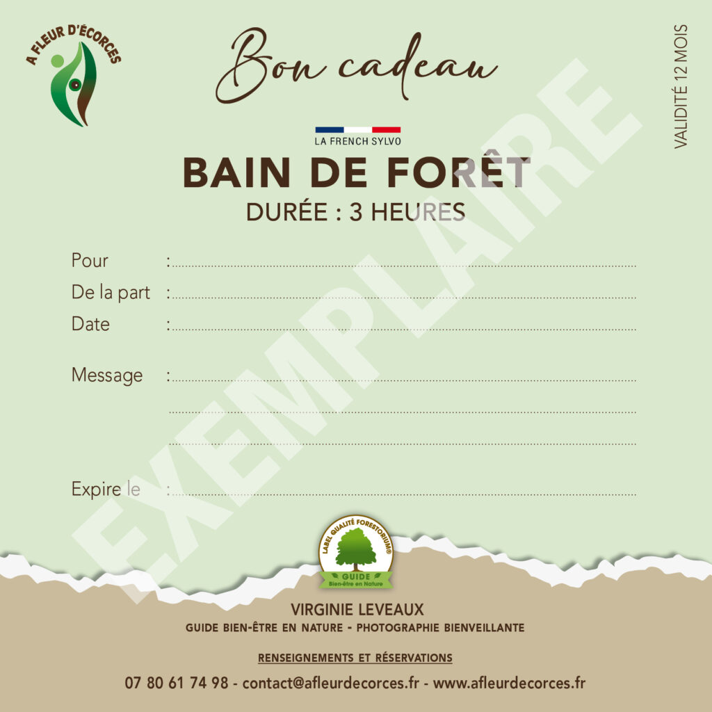 Claire D02/11/2025Trustindex vérifie que la source originale de l'avis est Google. Au cours d'une belle après-midi d'automne, je me suis laissée guidée par A fleur d'écorces dans un cheminement sensoriel au cœur de la Nature. Une parenthèse à la fois oxygénante, revigorante, douce, apaisante, parfois surprenante. Un temps suspendu durant lequel le quotidien s'arrête. Dans cette bulle où Virginie orchestre la rencontre, la Nature nous partage généreusement ses énergies, nous relie à elle et à soi pour un moment de profond ressourcement. Merci pour cette merveilleuse après-midi 🌿🌳 frederique poivert29/08/2025Trustindex vérifie que la source originale de l'avis est Google. Patchwork de sensations duo et d'émotions solo. Lorsque Virginie nous guide entre les êtres de la forêt, nous laissant tout à notre complicité mère-fille, nous retrouvons cette atmosphère originelle au plus proche de la Terre, dans ce cocon vert et naturel. Découverte en aveugle du bout des doigts, dans la confiance mutuelle... ou presque 😅 Plaisir du toucher de la mousse fraîche et douce. Sensualité de la caresse d'un arbre protecteur aux formes arrondies. Ruissellement apaisant de l'eau qui court entre les arbres au milieu d'un tapis de feuilles et de bâtons décorés par les insectes artistes. Chanson guillerette des oiseaux que l'on devine au sommet des plus hautes branches qui laissent filtrer la lumière sur le ruisseau et ses petites îles feutrées comme des touches de paradis terrestre où l'on voudrait s'endormir tout doucement. Mille mercis Virginie pour ces instants magiques et complices avec ma fille et tous ces êtres de la forêt qui nous ont accueillies avec tant de générosité 🧚♂️🧚♀️🧚 ECO BOX29/08/2025Trustindex vérifie que la source originale de l'avis est Google. ✨ Avis sur la séance de sylvothérapie ✨ J’ai eu la chance de participer à une séance de sylvothérapie et ce fut une expérience incroyable. Le contact avec la nature, l’écoute, le lâcher-prise et les exercices proposés m’ont permis de me reconnecter à moi-même, de relâcher mes tensions et de retrouver une profonde sérénité. 🌲💚 Je recommande vivement cette expérience à toute personne qui souhaite prendre un vrai temps pour soi, se ressourcer et retrouver un bien-être intérieur. Une belle parenthèse de douceur et d’énergie positive. 🙏✨